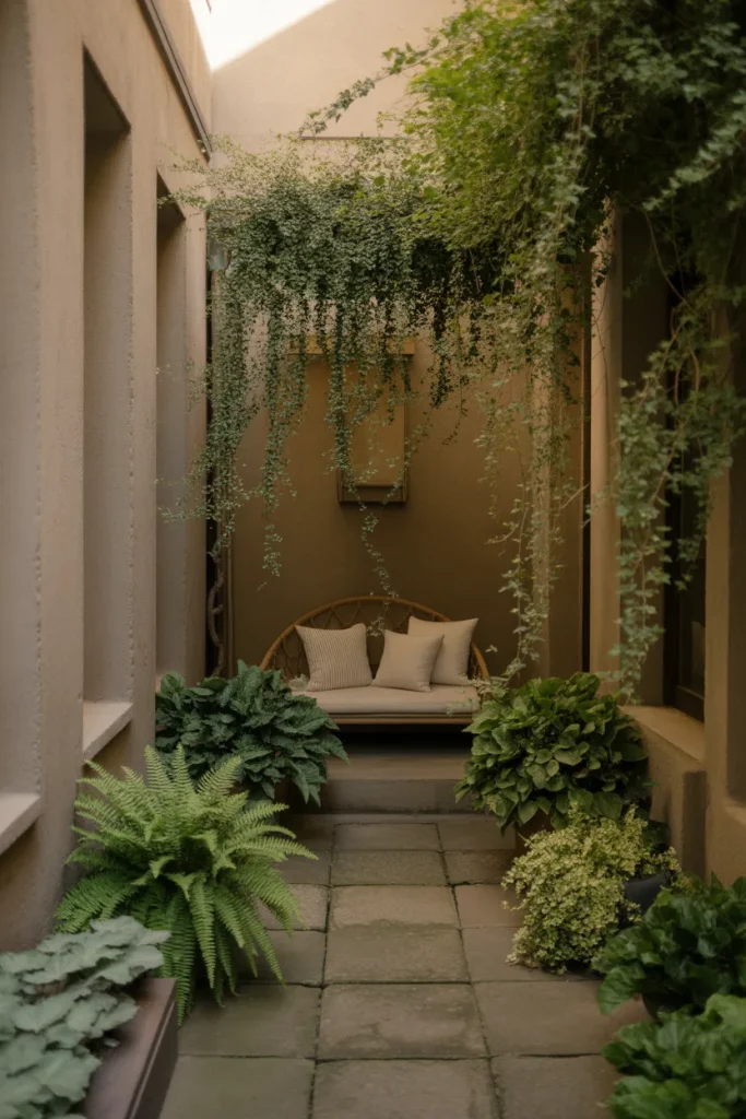 This idea of layout works best for long and narrow outdoor spaces. For these yards, just like with traditional lawns, the outdoor space corridor style is used. In Small Backyard Landscaping 2026, a focus on symmetry, narrow paths, and greenery on the sides of the paths feels intentional.