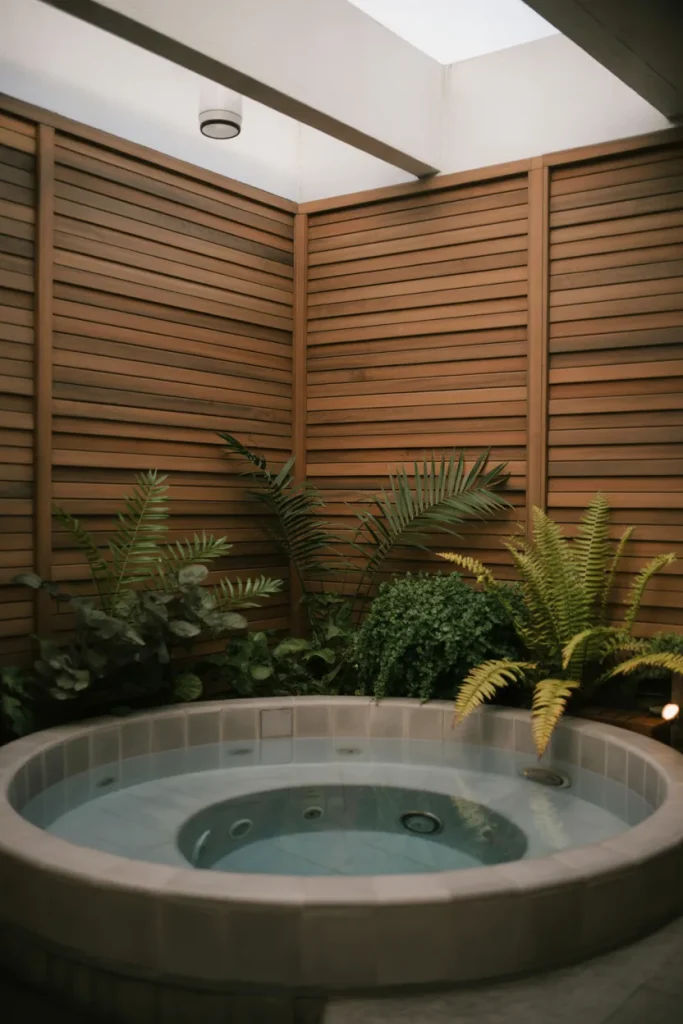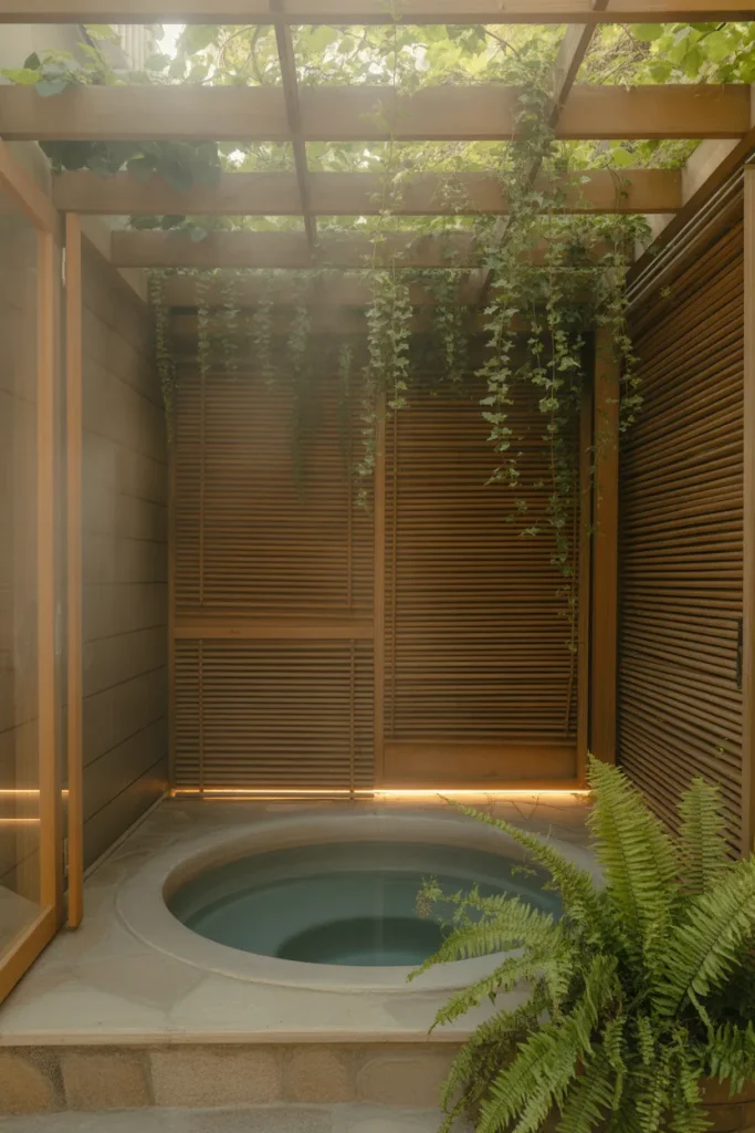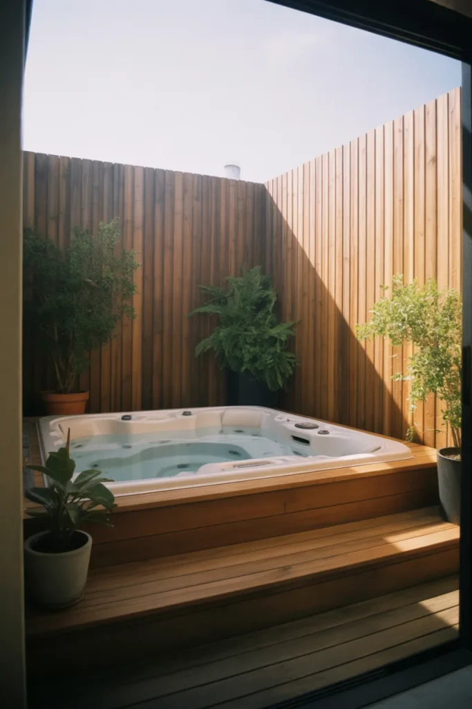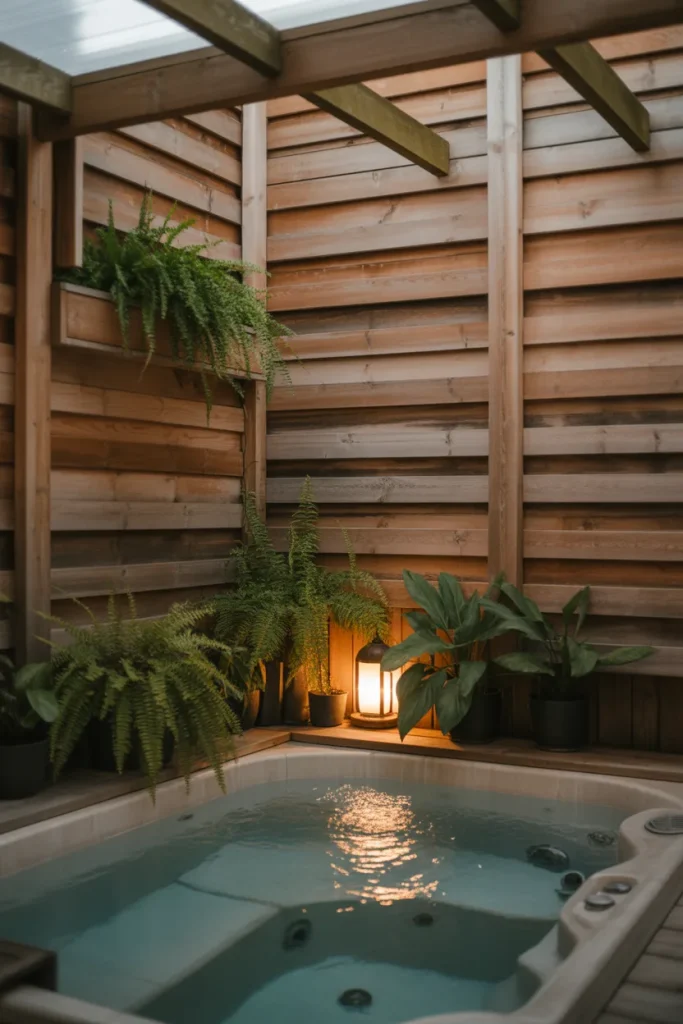This hot tub idea focuses on layered privacy. In Small Backyard Landscaping 2026, the corners of these quiet tubs converted neglected corners into private retreats.