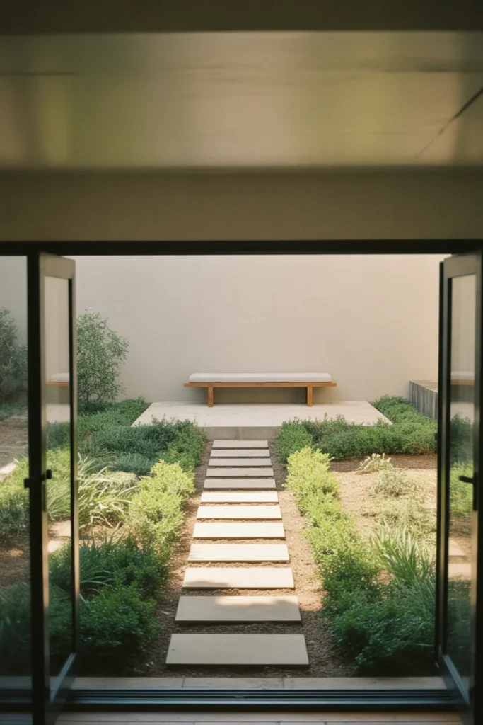 Linear garden paths are a simple and effective way to organize small backyards. A simple pathway divides planting zones while guiding movement. This layout provides structure in a space-dominating way.