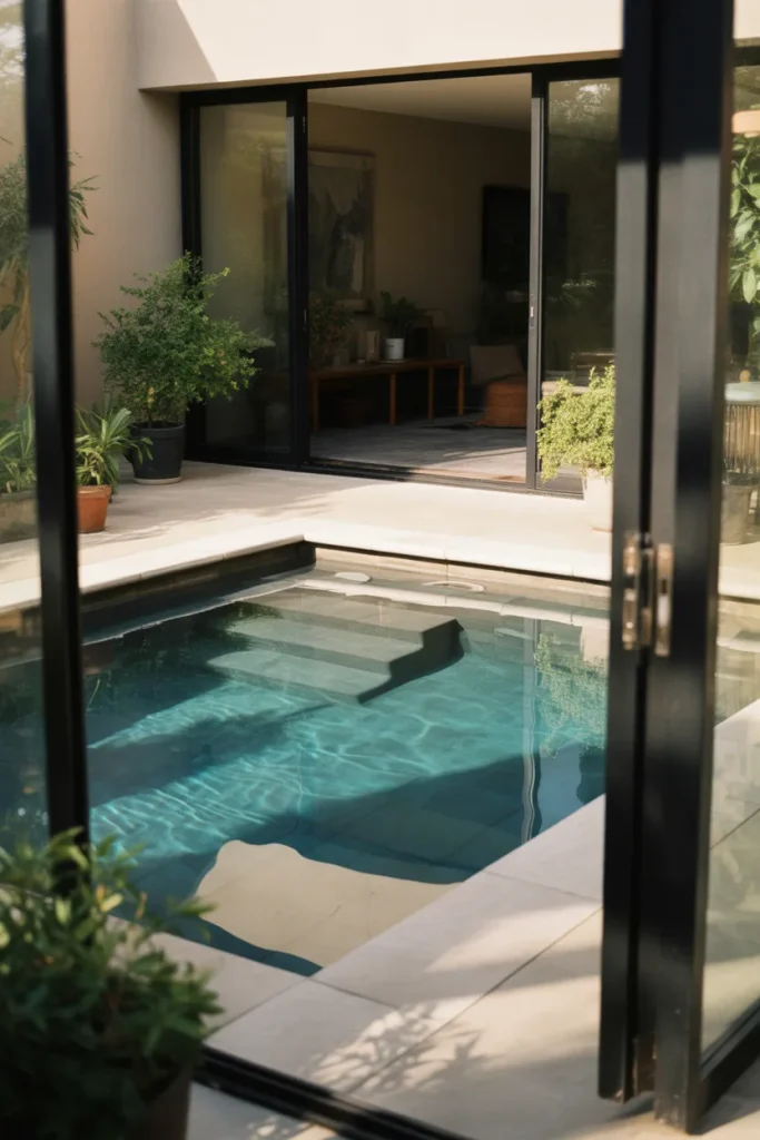 A small pool doesn’t have to dominate the yard. Thoughtful designs integrate plunge pools or narrow basins into the overall layout, leaving space for seating or greenery. The result feels intentional rather than squeezed.