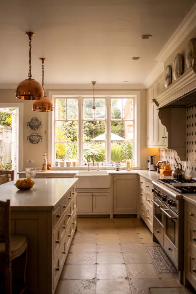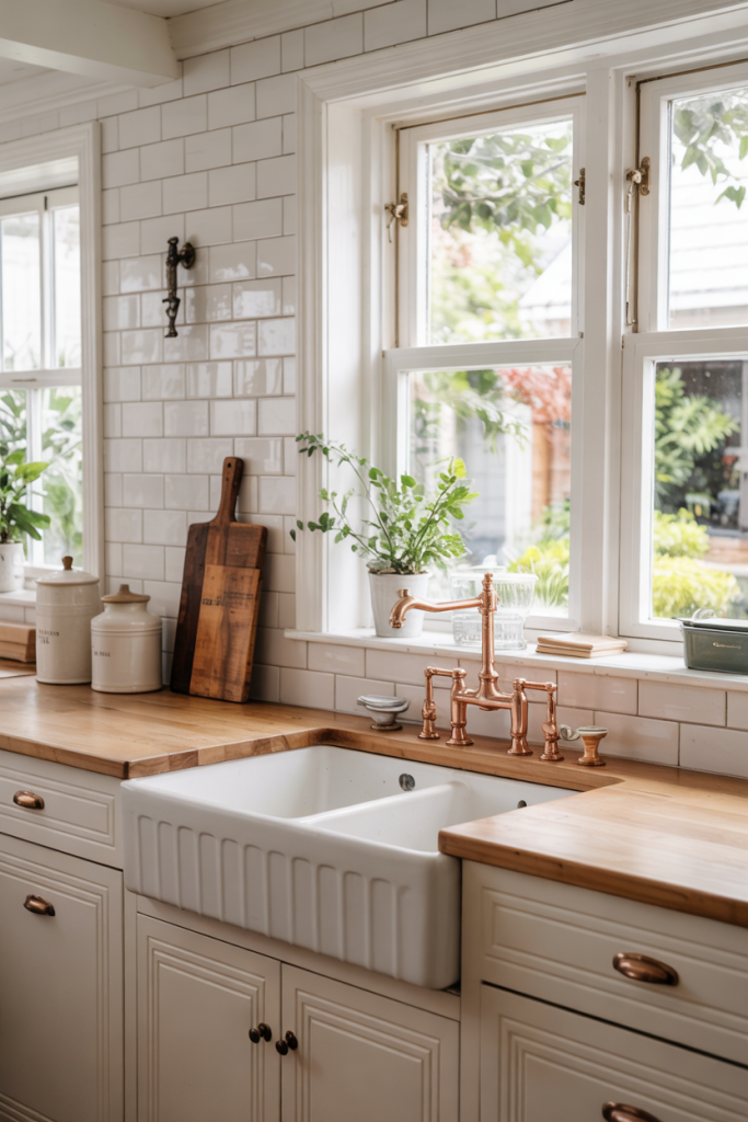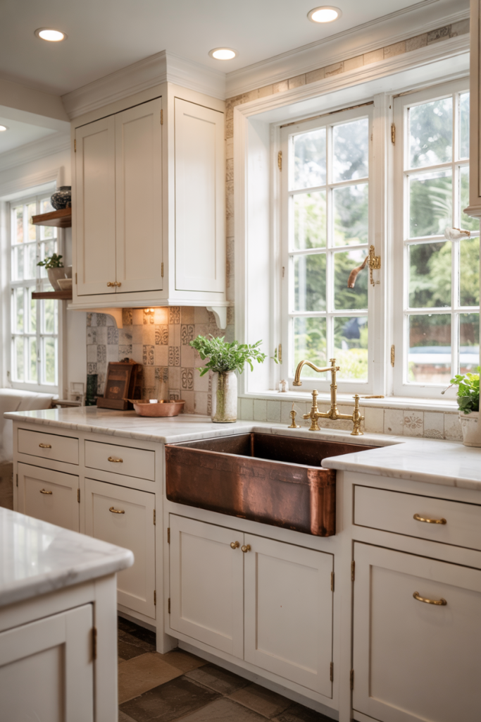 The farmhouse sink remains iconic, but this year’s updates include stone or apron-front copper styles. They bring instant rustic texture to an otherwise sleek setup. Combine them with white cabinets and hand-glazed backsplash tile for a balanced mix of clean and old-world charm. A small detail that becomes a centerpiece.