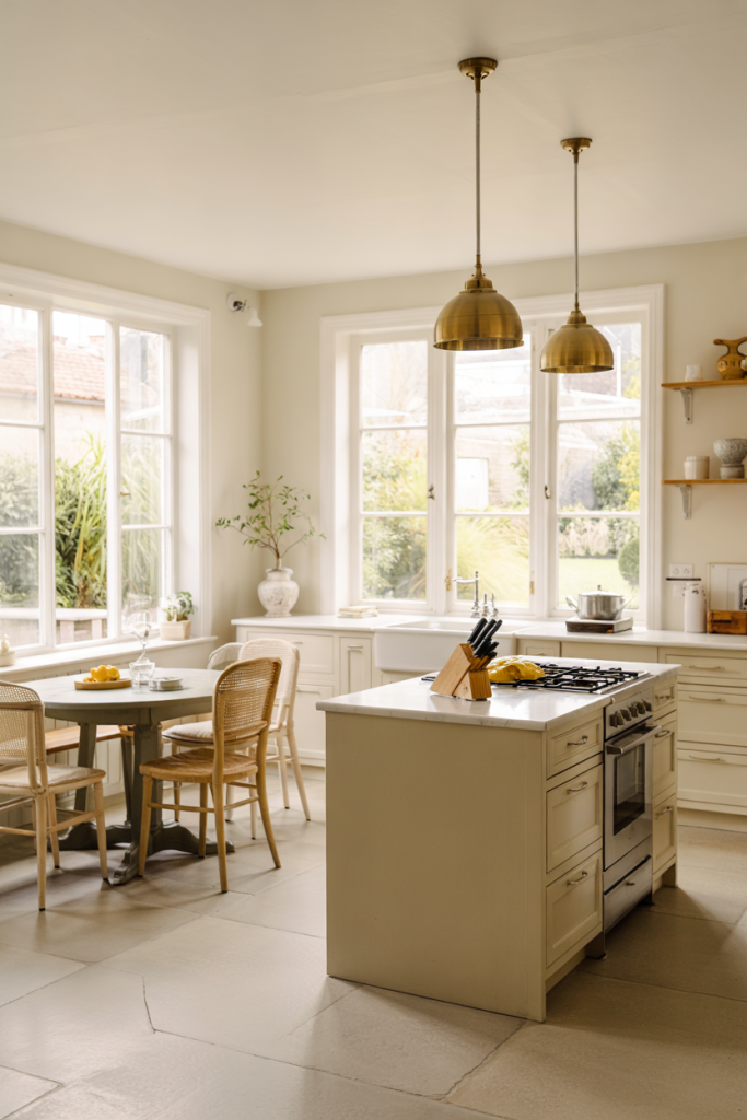 Lighting the kitchen area in 2026 has nothing to do with dull designs. Large-scale pendant lamps made from metal or glass can now function as mini-sculptures. Alongside the addition of black paint or brass details, the atmosphere of the entire kitchen transforms. Lighting up the area above the island or the area above the sinks can now become mini-masterpieces.