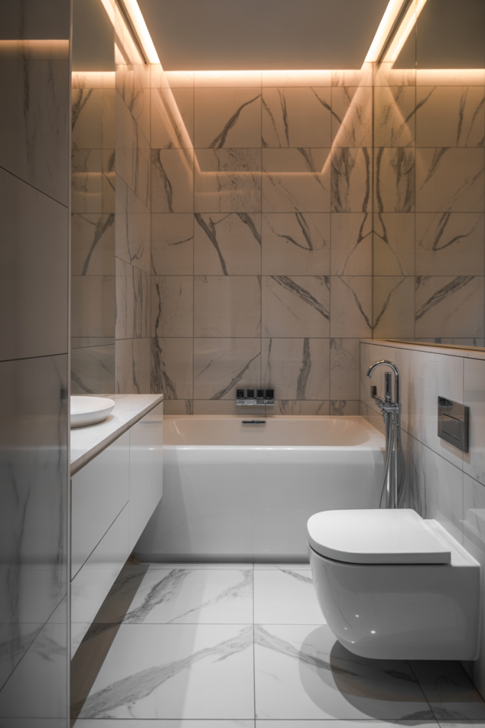 Soft gray marble-look tiles are the go-to for 2026 when you want elegance without excess. Their delicate veining makes them perfect for both floor and decor applications, bringing timeless sophistication to neutral bathrooms. Pair them with matte white fixtures for contrast, or use them to elevate a small bathroom into a serene retreat. Interior designers note that gray never feels outdated — it simply evolves.