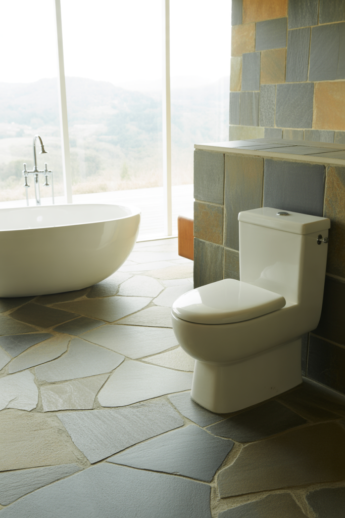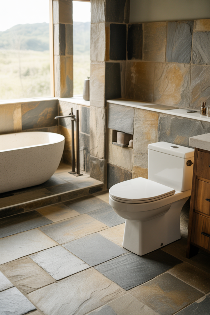 Rustic design in 2026 embraces raw beauty — matte terracotta ceramic or tumbled stone tiles in muted brown or gray shades. Perfect for guest bathrooms or cozy cabins, these textures invite warmth and authenticity. Architectural Digest suggests pairing them with aged metal finishes and rough-hewn wood for that timeless countryside touch.