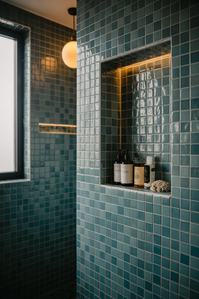 In 2026, mosaic tiles are reclaiming the spotlight as functional art pieces. Designers are using intricate patterns in blue, green, and neutral tones to create statement walls or highlight shower walk niches. Whether it’s glass or ceramic, mosaic work adds a personal, handcrafted touch that transforms even small bathrooms into boutique-style sanctuaries. It’s detail that feels both luxurious and timeless.