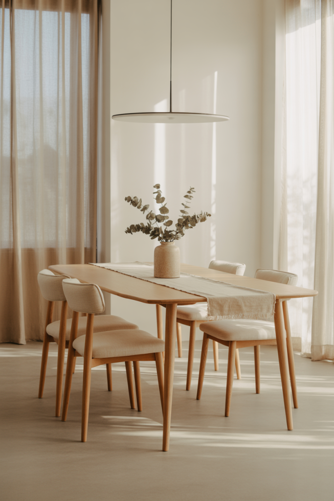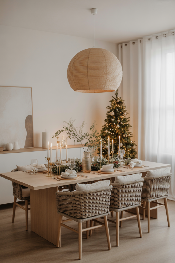 More people now create a year-round look they can easily elevate for Christmas gatherings. Neutral tones and organic textures make holiday décor effortless—candles, greenery, or garlands feel instantly festive without being overwhelming. A stylist from The Spruce once shared that neutral dining rooms “behave like perfect backdrops,” and she’s absolutely right.