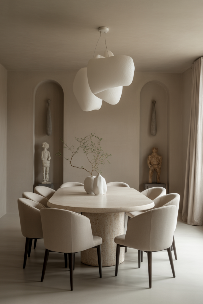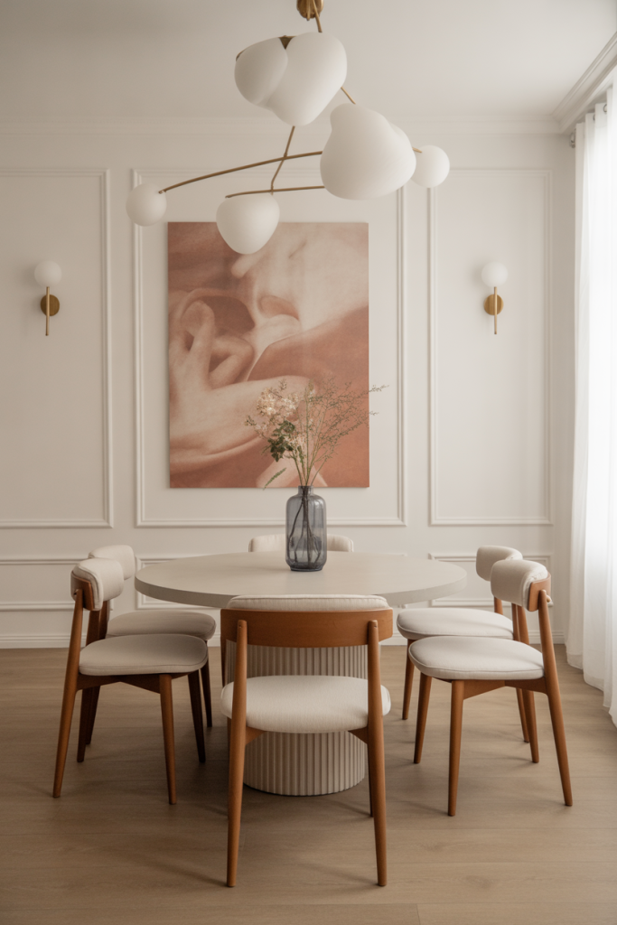 This 2026 trend blends luxury, restraint, and comfort in one mood. Clean lines meet soft textures, making it ideal for both a house and an apartment. Think creamy walls, sculptural lighting, and a round table that feels like a quiet centerpiece. I once walked into a friend’s minimalist dining room where the only statement was a long oak shelf and one striking vase—and it felt like a deep breath after a long day. Inspiration here is all about removing noise and keeping meaning.
