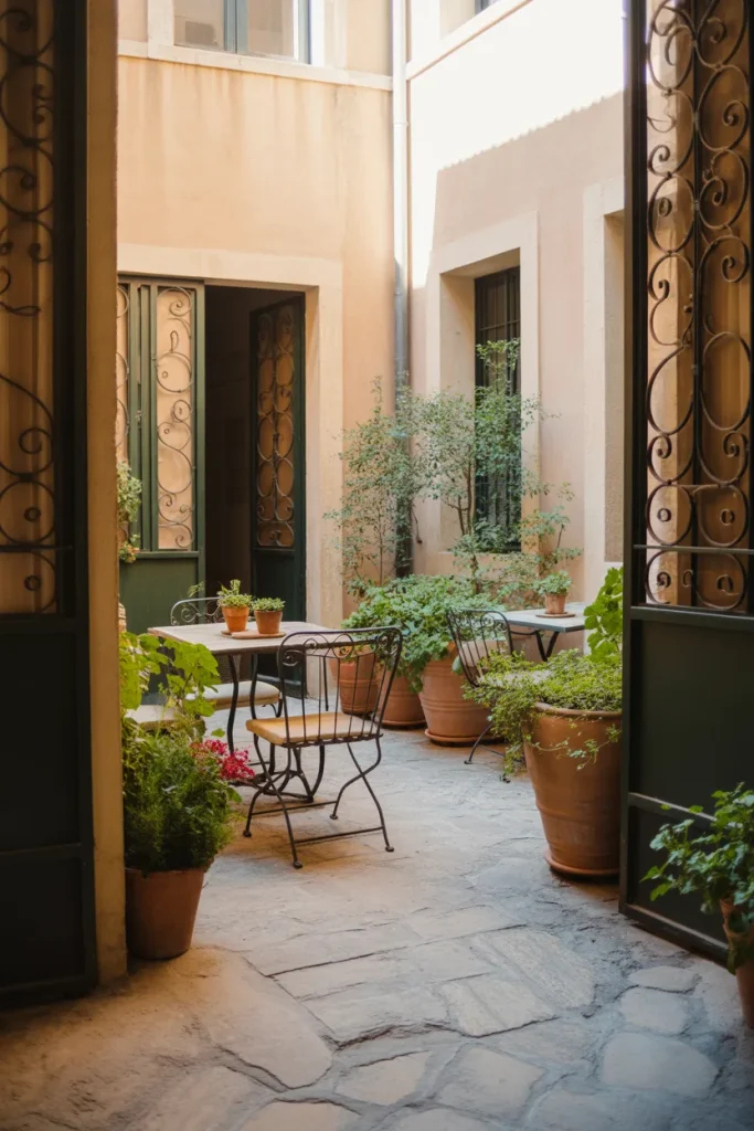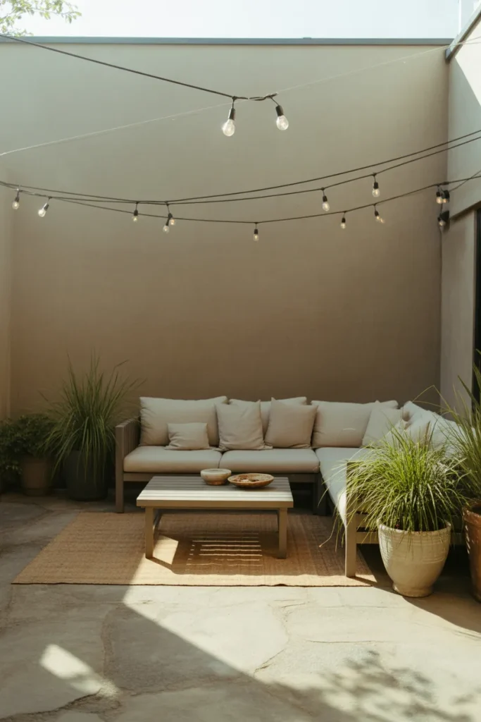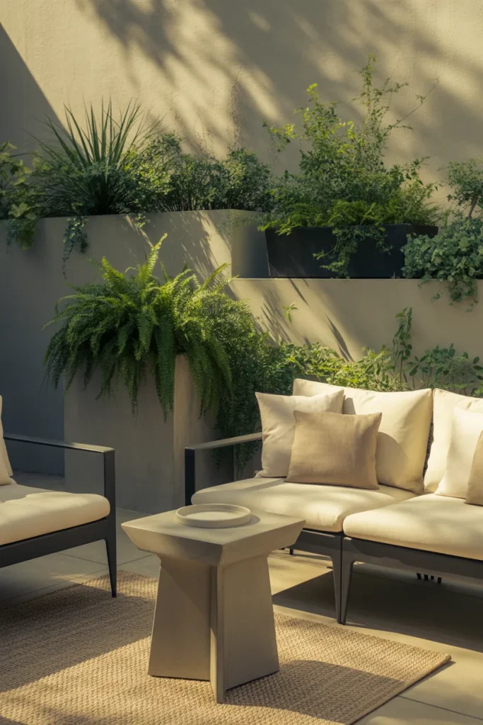 Some patios work best when the perimeter is defined by walls or fences. This enclosure improves the space’s warmth and acoustics, creating a private enclosure that makes a small space feel more intentional and calm.