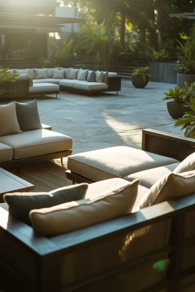 From a practical standpoint, this type of patio works best when furniture is modular. Pieces that can be rearranged allow the space to adapt from quiet mornings to evening gatherings without effort. Choosing weather-resistant fabrics and finishes keeps maintenance low while preserving that crisp, contemporary feel season after season.