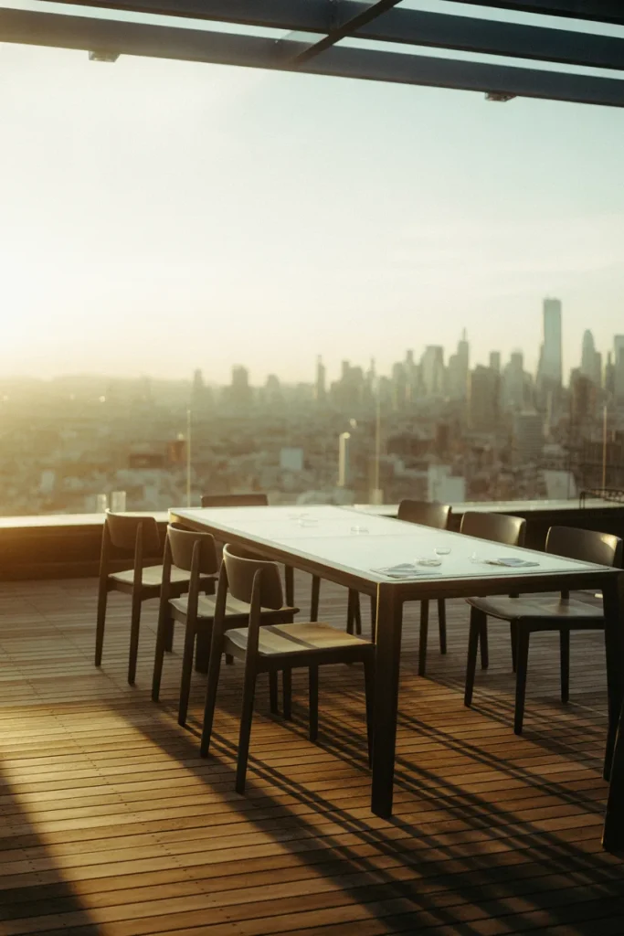 Eating in a rooftop open patio makes a regular meal special. A rooftop open patio prioritizes lightweight furniture and unobstructed views. Simple materials help to keep the focus on the views rather than on the furniture.