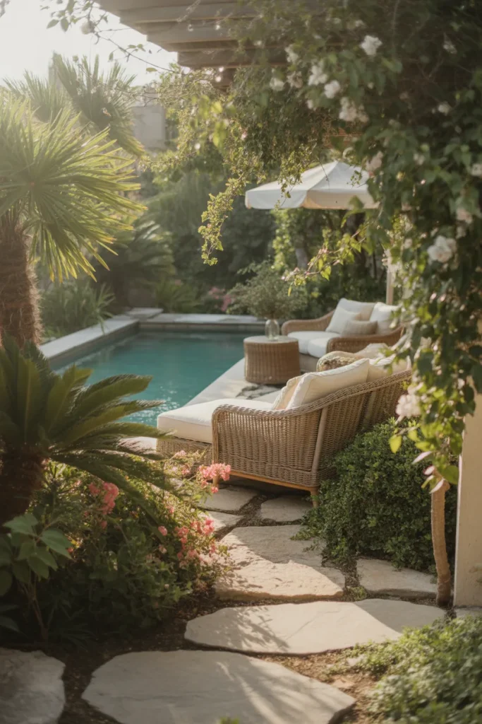 Experts recommend prioritizing shade before décor in poolside spaces. Without it, even the most stylish seating goes unused during peak hours. Thoughtful placement makes the patio functional from morning through evening.
