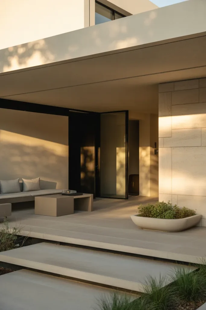 Designers mention that front patios are more successful when properly scaled. Large pieces can overpower an entry, while smaller pieces keep things in balance. This approach lets the home’s architecture be the focal point.