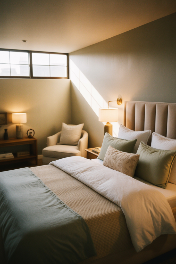 Budget angle: You don’t need a spa-level renovation. Good lighting—especially sconces and floor lamps—creates instant softness without restructuring walls or ceilings.