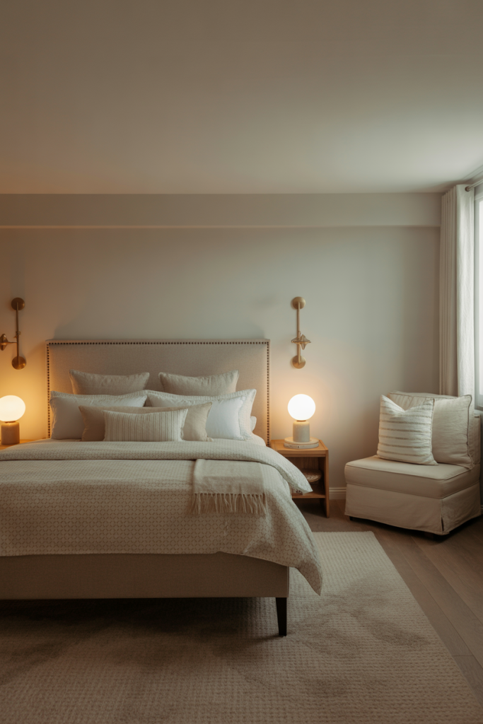 Budget angle: You don’t need a spa-level renovation. Good lighting—especially sconces and floor lamps—creates instant softness without restructuring walls or ceilings.