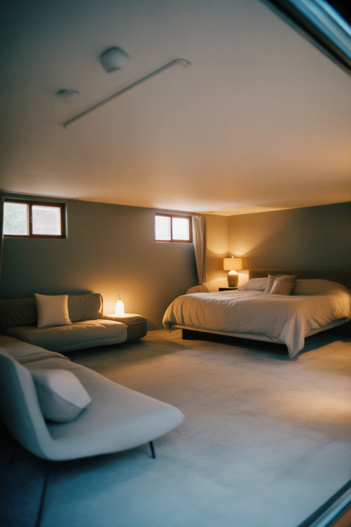 A split layout helps transform an open basement into a multifunctional retreat. By dividing the space visually—using rugs, lighting, or a partial wall—you gain a calm sleeping zone plus a small seating nook. It’s especially helpful in large basements where a full finished renovation isn’t required.