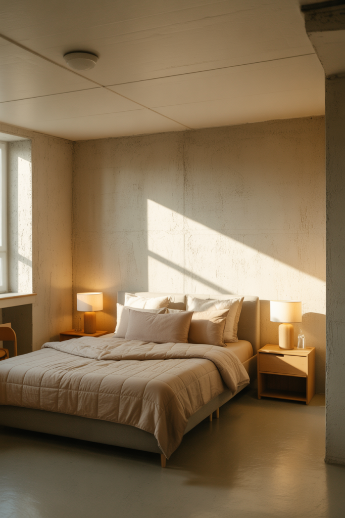 One more practical insight: lighting is your biggest ally. Instead of overhead fixtures, use table lamps, floor lamps, and wall sconces to soften vertical shadows. These small choices make low ceilings feel higher and unfinished textures feel intentional, not accidental.