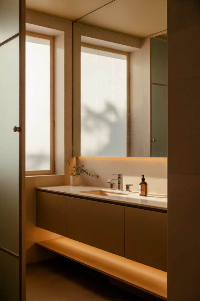 A practical insight here is placement. Extending mirrors to the edges of walls or up to the ceiling amplifies light and reduces visual breaks, which helps compact bathrooms feel more generous and intentional.