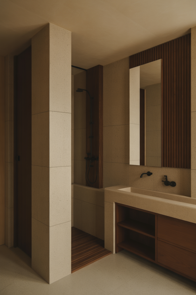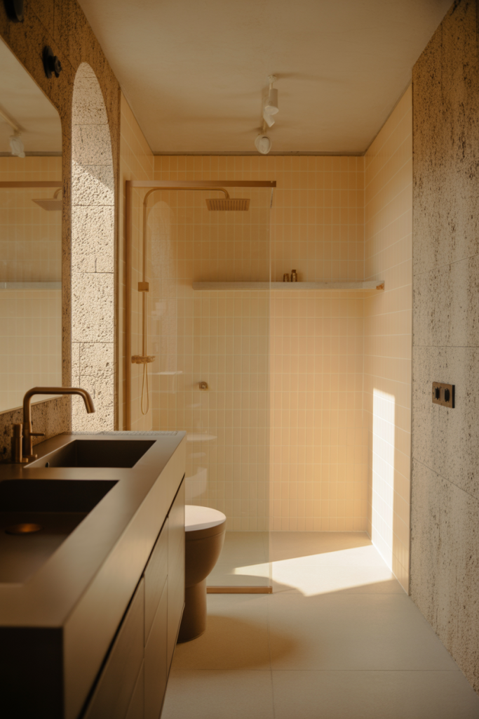 Minimalism feels warmer when guided by earthy tones and natural finishes. This style of the bathroom preserves comfort and strips away excess with a balance of texture and color.