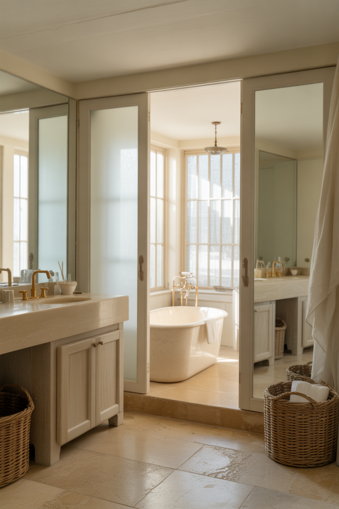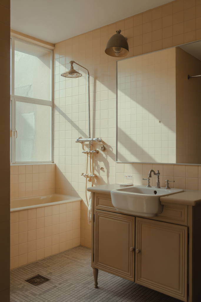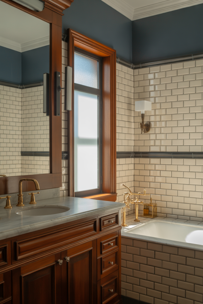 This approach suits homeowners who want personality without committing to a full period look. The value lies in balance: one or two vintage elements are enough. Overdoing it can quickly shift the bathroom from curated to costume-like.