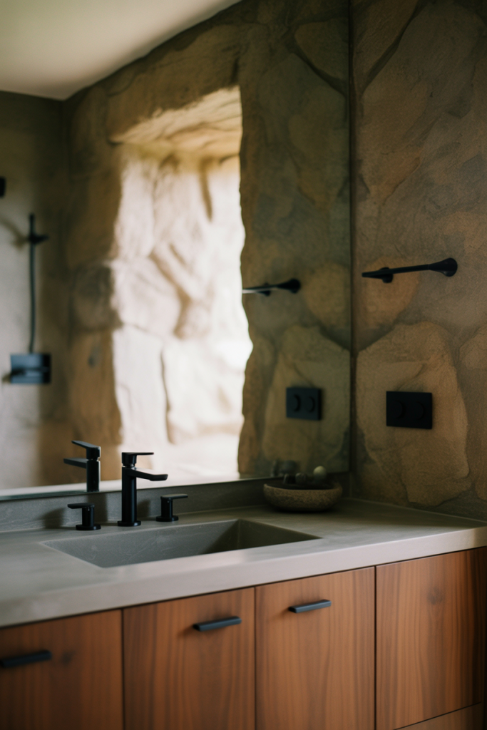 Rustic elements are being reimagined through a modern lens, blending Rustic textures with Earthy palettes and clean geometry. Natural stone, wood grain, and soft plaster finishes bring warmth, while modern fixtures prevent the space from feeling heavy or overly traditional.