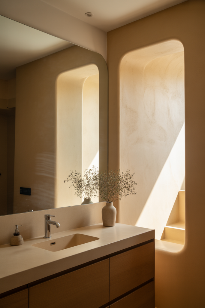 Experts note that organic forms help reduce visual stress, especially in high-use spaces like bathrooms. This makes the style ideal for busy households. The insight here is psychological: softer lines subconsciously encourage relaxation, making mornings and evenings feel less rushed.