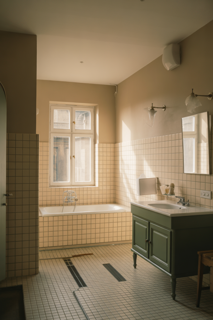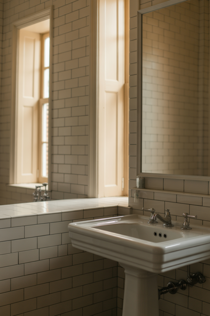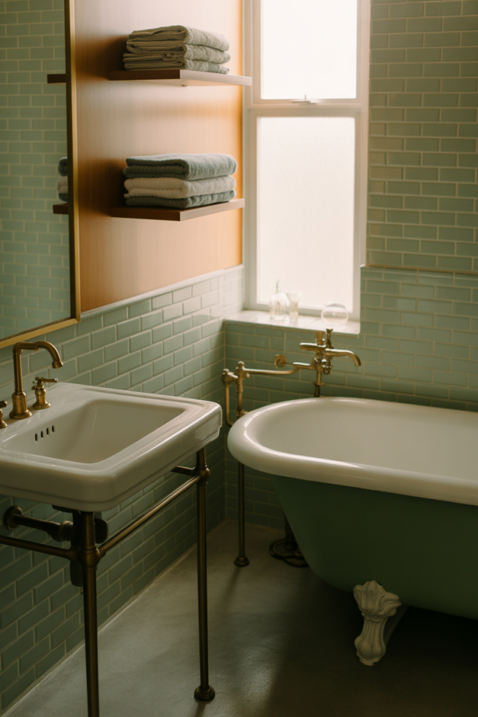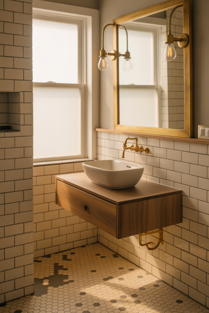 This approach suits homeowners who want personality without committing to a full period look. The value lies in balance: one or two vintage elements are enough. Overdoing it can quickly shift the bathroom from curated to costume-like.