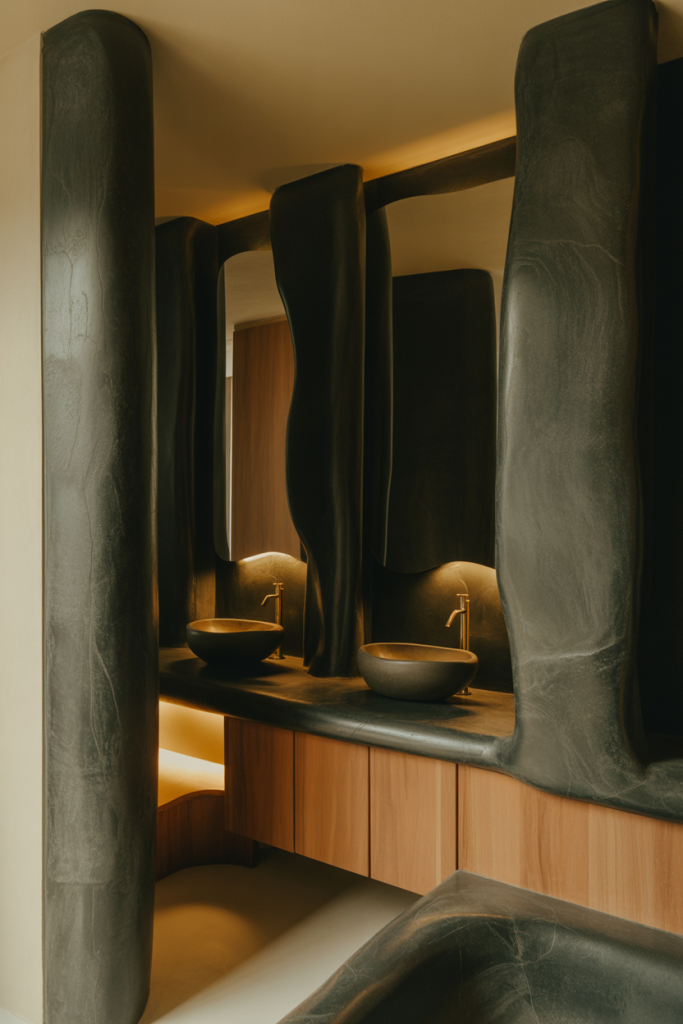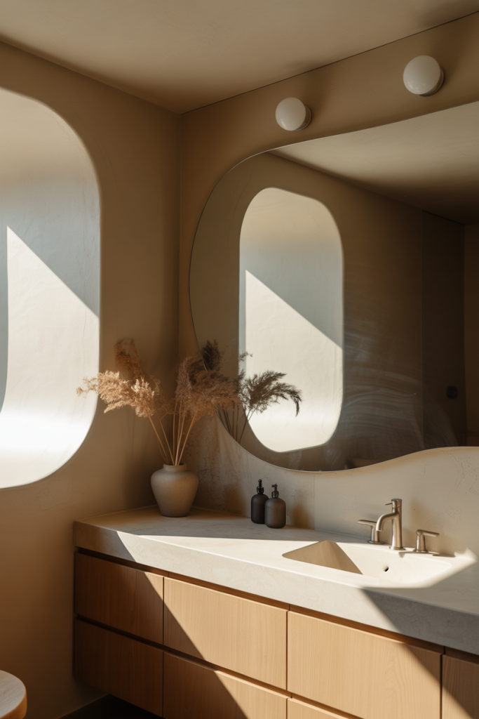 Experts note that organic forms help reduce visual stress, especially in high-use spaces like bathrooms. This makes the style ideal for busy households. The insight here is psychological: softer lines subconsciously encourage relaxation, making mornings and evenings feel less rushed.