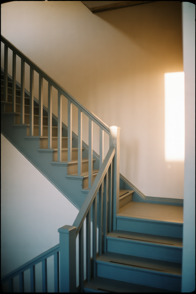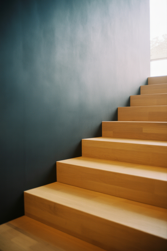 This calming staircase idea employs a gentle color wash that harmonizes with breezy coastal living. It matches Indoor settings that have relaxed palettes, while soft blue-gray tones provide subtle Coastal inspiration without feeling quirky. A smooth painted finish nice and clean.