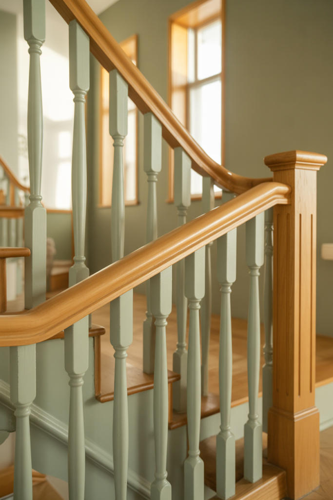 Common mistake to avoid: choosing spindle colors that contrast too sharply with surrounding walls. When tones clash, the staircase can look fragmented instead of harmonious.