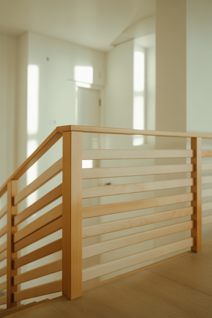 This streamlined railing focuses on simplicity and clean geometry. Slim bars and subtle spacing pair beautifully with Modern minimalist interiors, adding structure without visual noise. Touches of matte finish create a quiet elegance that suits open plans and understated staircases.