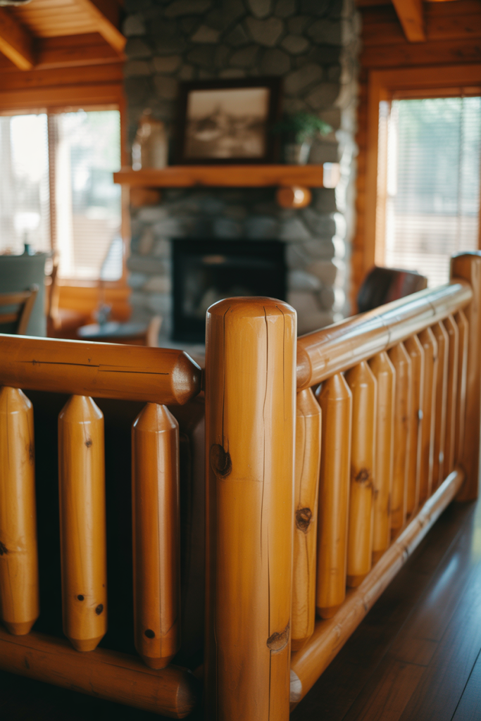 Warm wood grain and handcrafted elements bring familiarity to everyday spaces. This idea suits homes craving a cozy edge and works particularly well when paired with Rustic farmhouse textures or simple Wooden beams overhead. Its soft curves and naturally varied tones help the railing feel both intentional and lived-in.