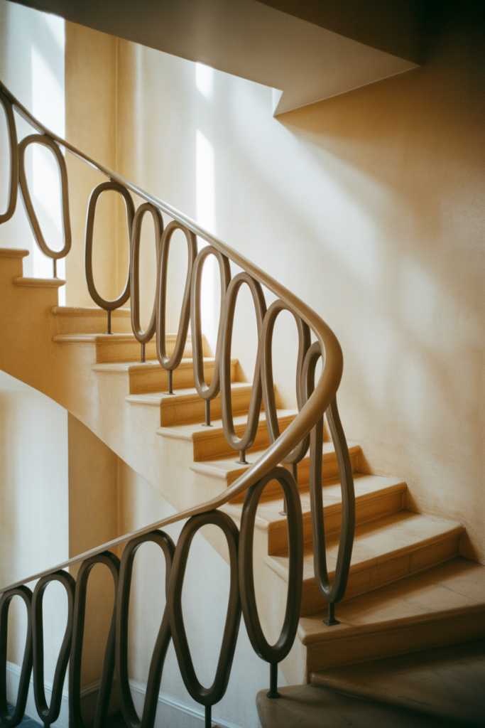 For those eager to make a bold statement, this rail idea introduces sculptural elements that feel like functional art. It works well in Interior spaces that already have personality and pairs beautifully with Artistic designs or forms that break away from symmetry. The result is a focal point that sparks conversation.