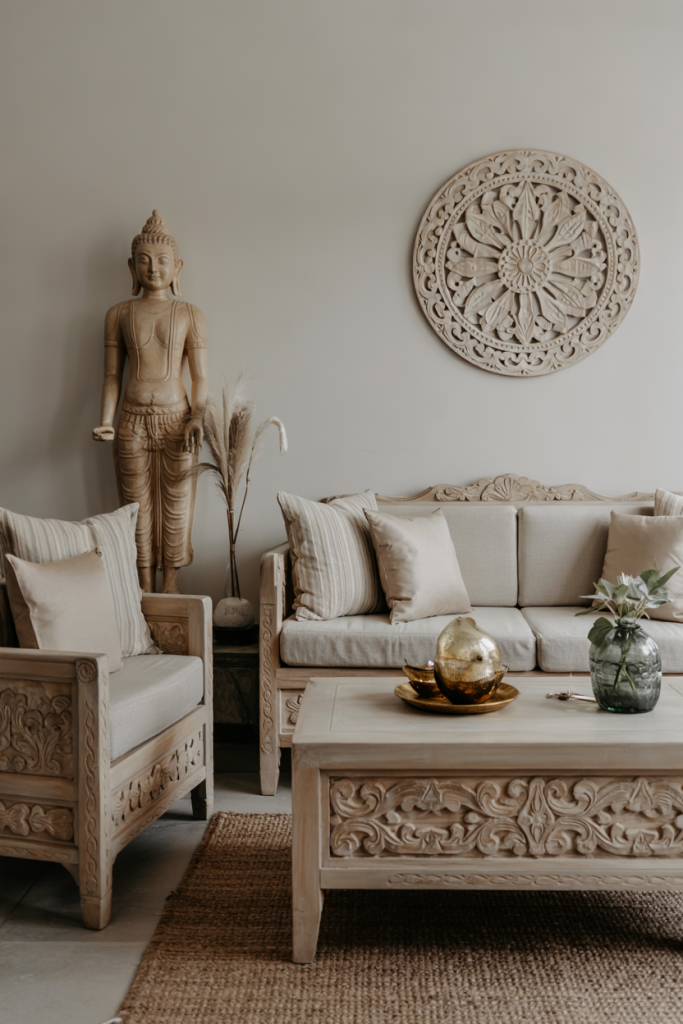 The Indian design philosophy gives importance to handcrafted detailing from carved wooden panels to block-printed textiles. Lately in 2026, we have been witnessing the subtle use of such patterns, gently blending them into modern European layouts for warmth and genuine character. An imposed Buddha or a handwoven rug will set up a spiritual vibe grounded to earth.