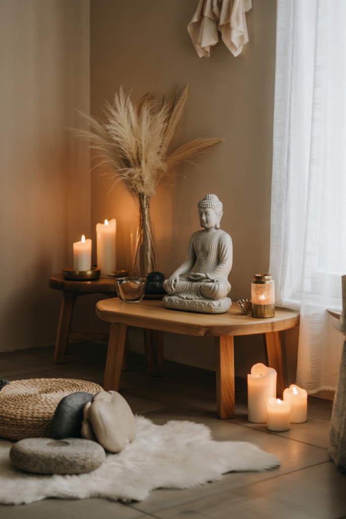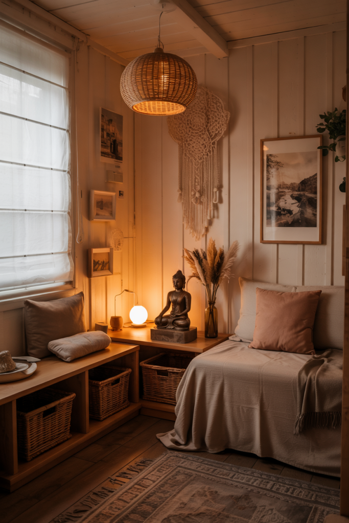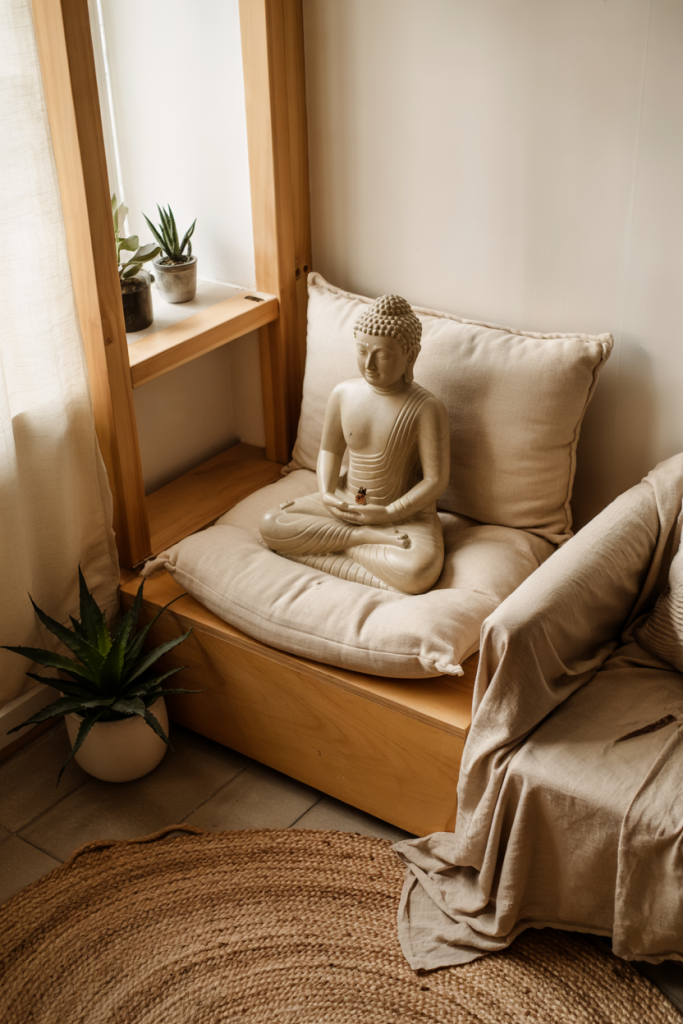 Even tiny spaces need calm. Designers are carving out small sanctuaries—reading nooks, tea spots, or corners with a Buddha statue and candles. These ideas transform urban apartments into peaceful retreats where beauty meets mindfulness.