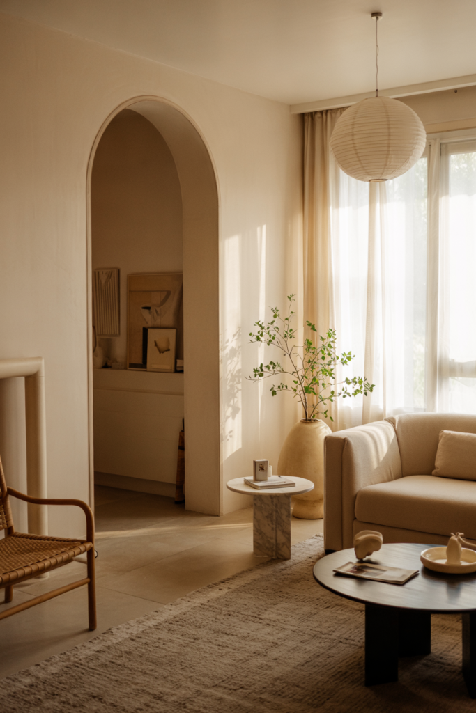 Arched openings and sculptural forms return as the new icons of classic-modern fusion. Clean lines play well with soft curves, especially when contrasted with Arch features and subtle Modern classic touches. This balancing act elevates the living room without making it feel formal.