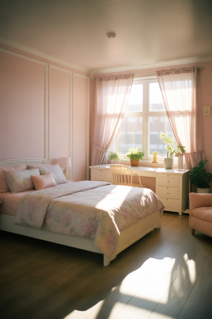 Where it works best is in bedrooms with good natural light. Soft styles rely on daylight to keep the room feeling fresh rather than overly sweet.