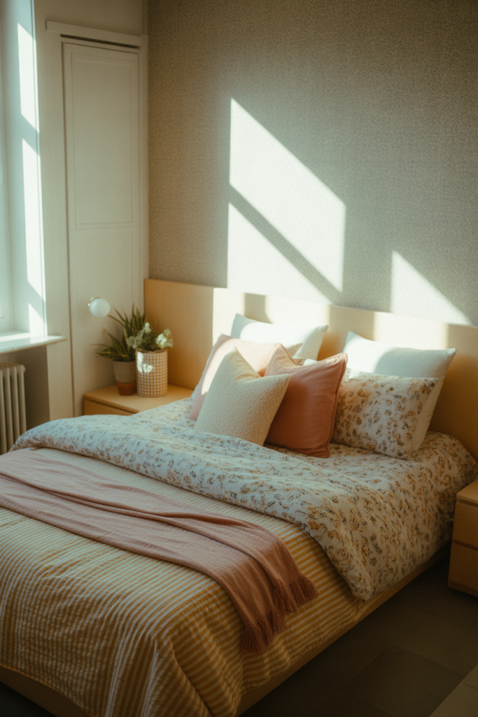 Pattern mixing is gaining traction in teen girl bedroom ideas aesthetic as confidence in self-expression grows. Stripes, florals, and abstract prints coexist through coordinated decor, creating energy without chaos. The key is balancing color tones so the room feels vibrant yet cohesive.