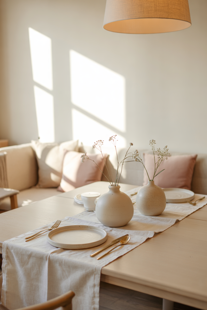 A micro anecdote: I once saw a pastel-heavy Scandinavian dining room where a simple lavender napkin set completely transformed the mood. Small touches can brighten the entire scene without overpowering the simplicity.