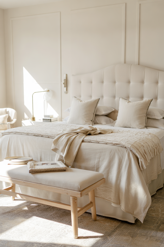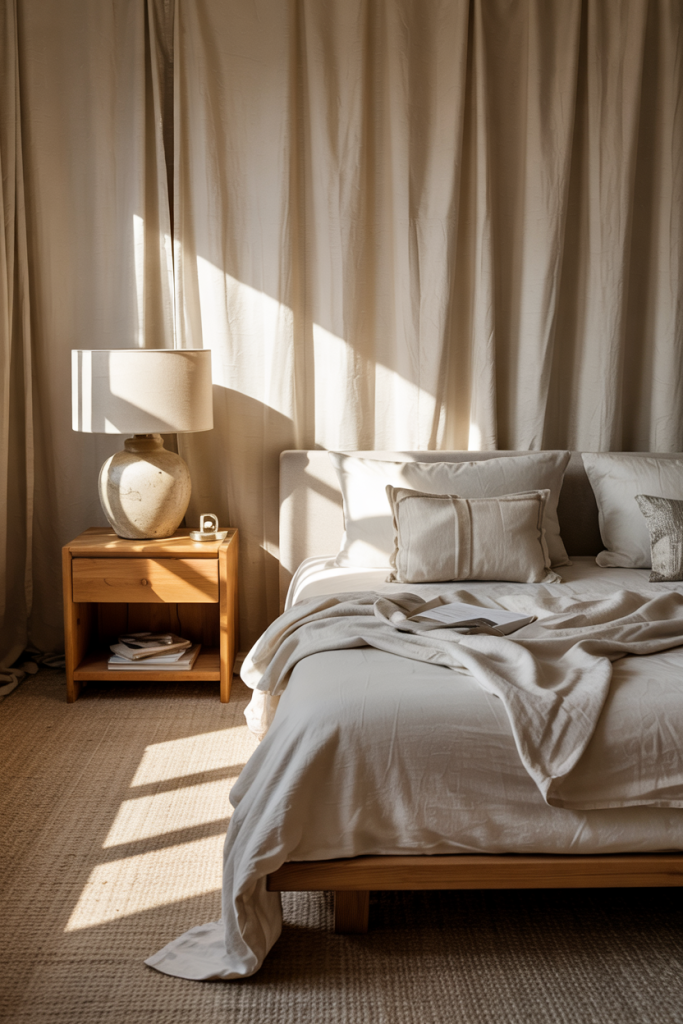 This idea fits best in medium to large bedrooms where visual quiet makes the biggest impact. The combination of symmetry and soft materials helps American homes counter fast-paced routines with intentional stillness.