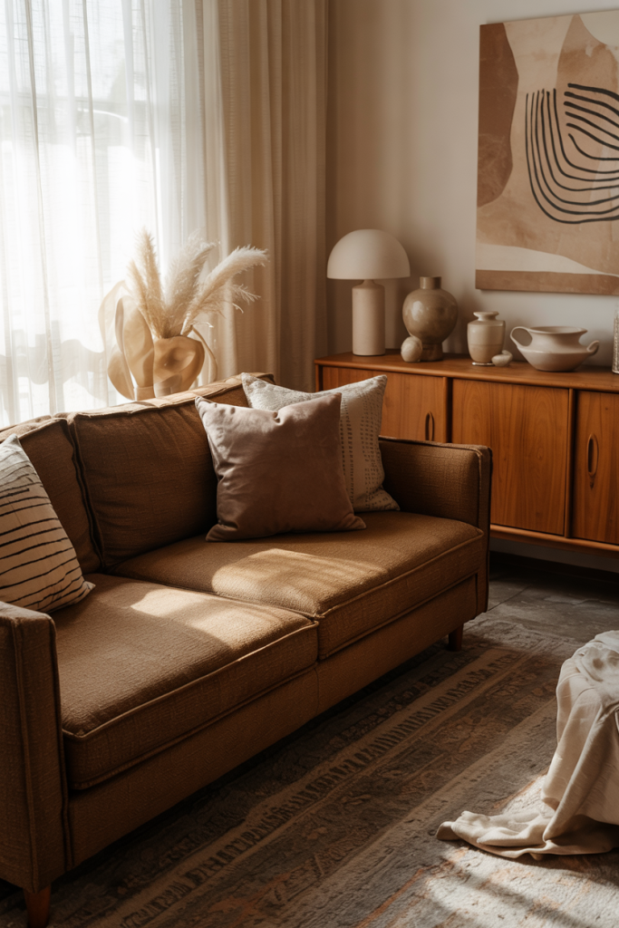 American lifestyle context: this look works beautifully in open-concept homes, where layered textures help define the living area without needing walls or heavy furniture to create separation.