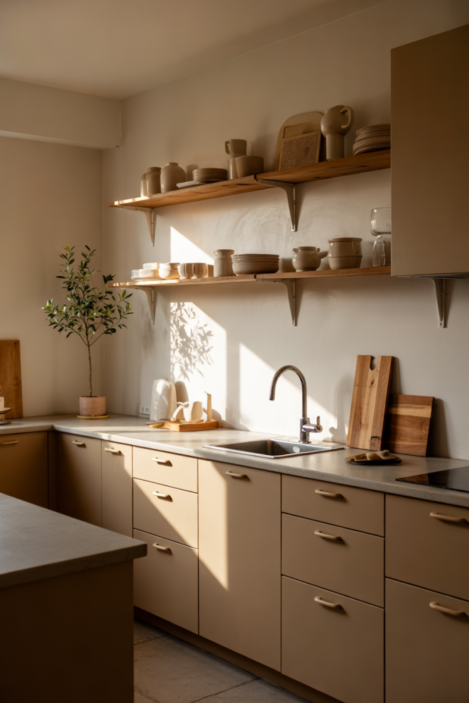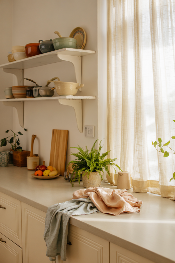 Budget/price angle: instead of repainting walls or buying new cabinets, introduce color through accessories—bowls, textiles, trays—which refresh the kitchen seasonally without major expenses.