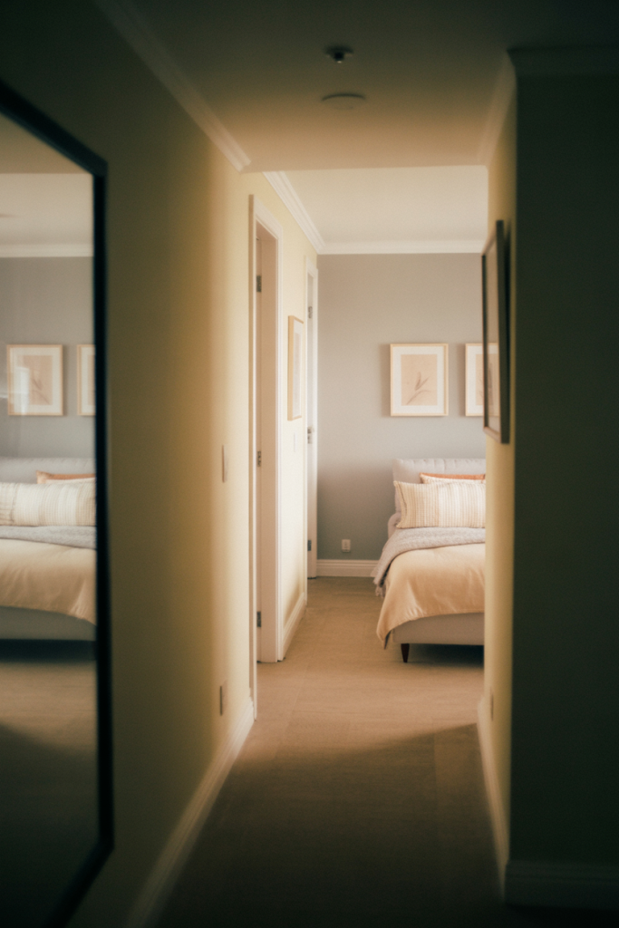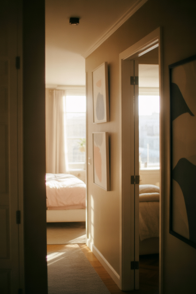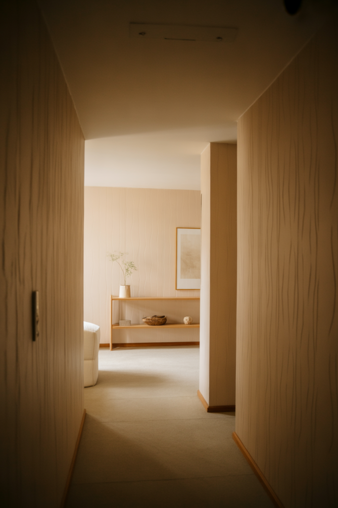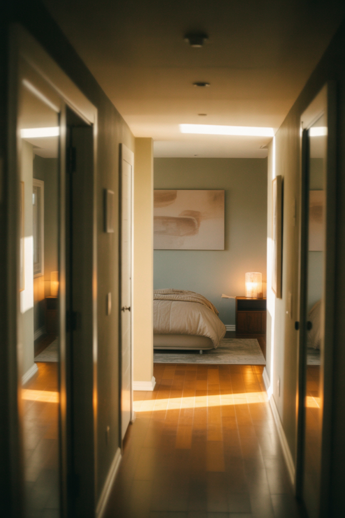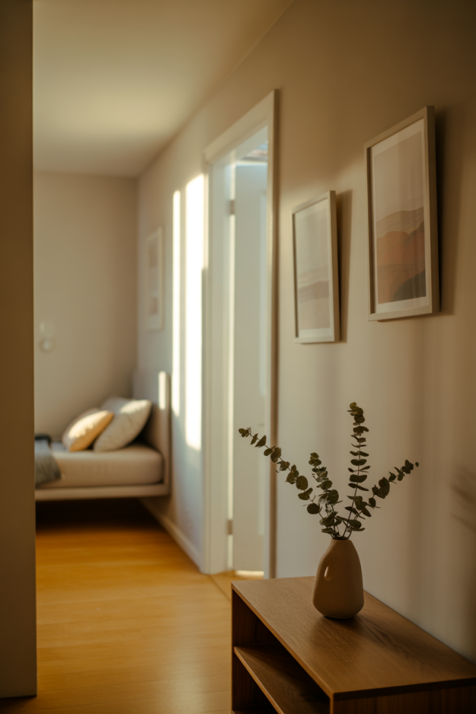 The hallway leading to the bedrooms is a space that should feel calm. In 2026, designers view these spaces as emotional buffers and use soft, muted colors, minimal decoration, and generous use of soft materials to promote rest and privacy.