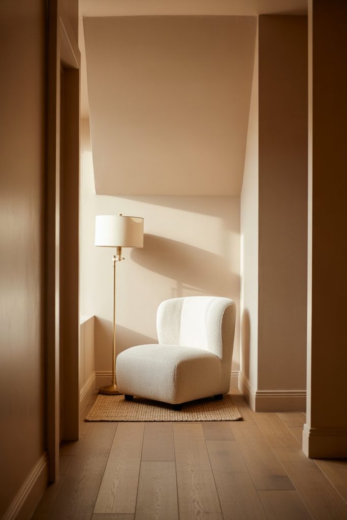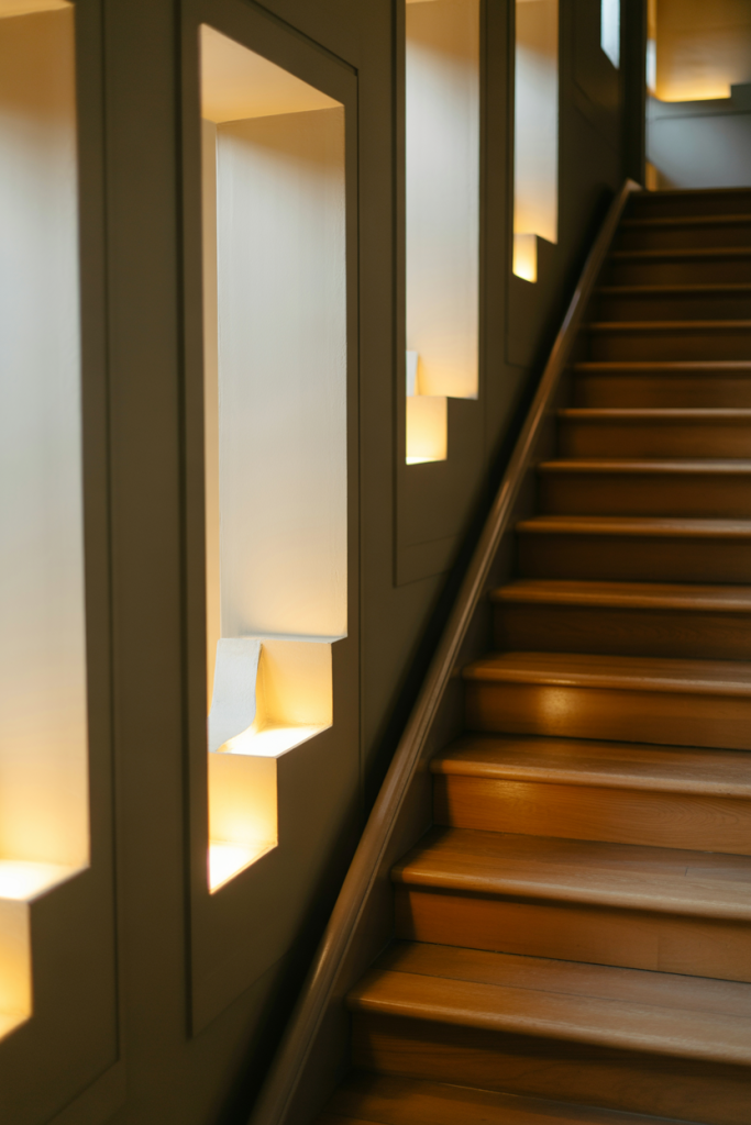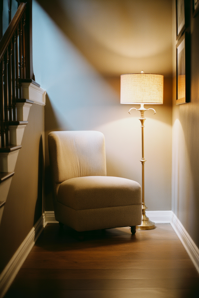 A stair landing is often accompanied by an unused corner. In 2026, designers will treat this spot as a visual pause. A chair, plant, or lamp makes the hallway feel more intentional rather than an afterthought.