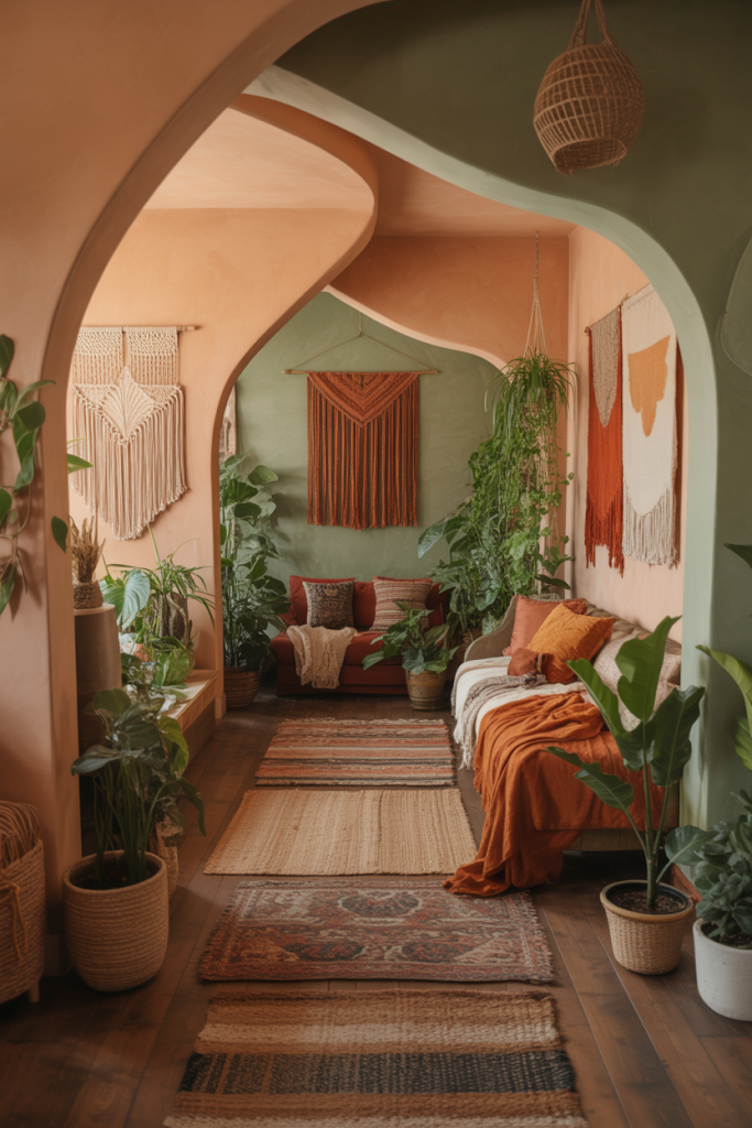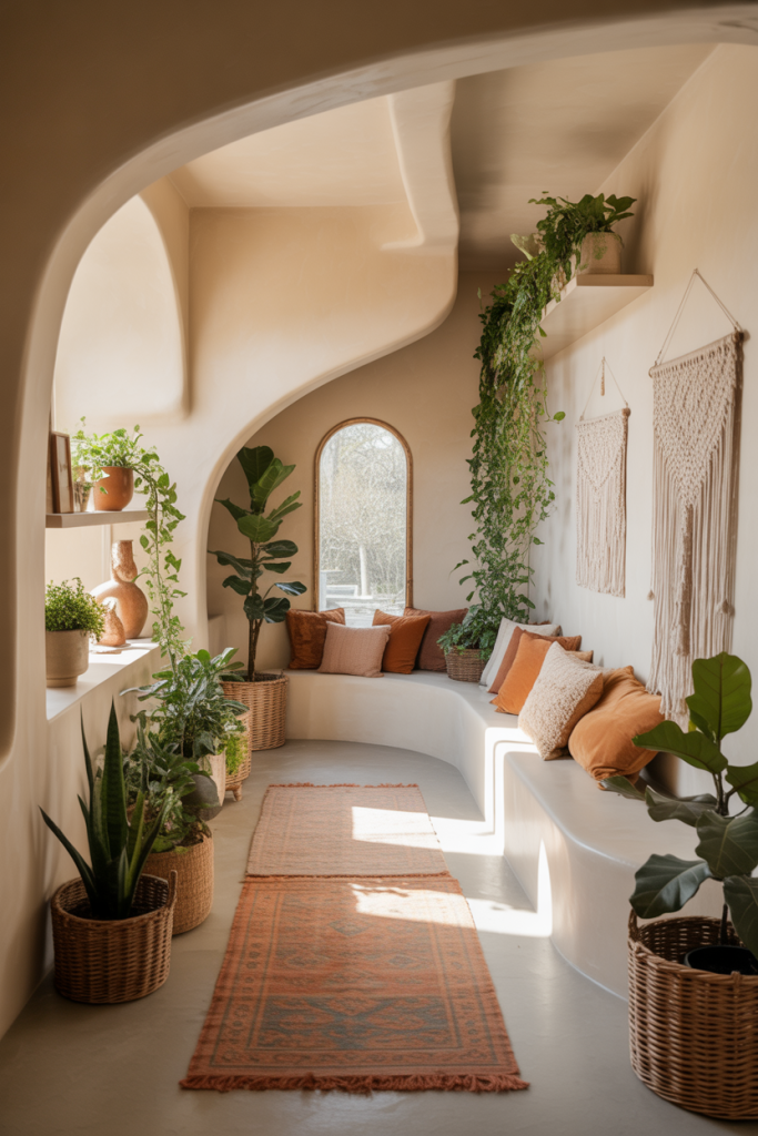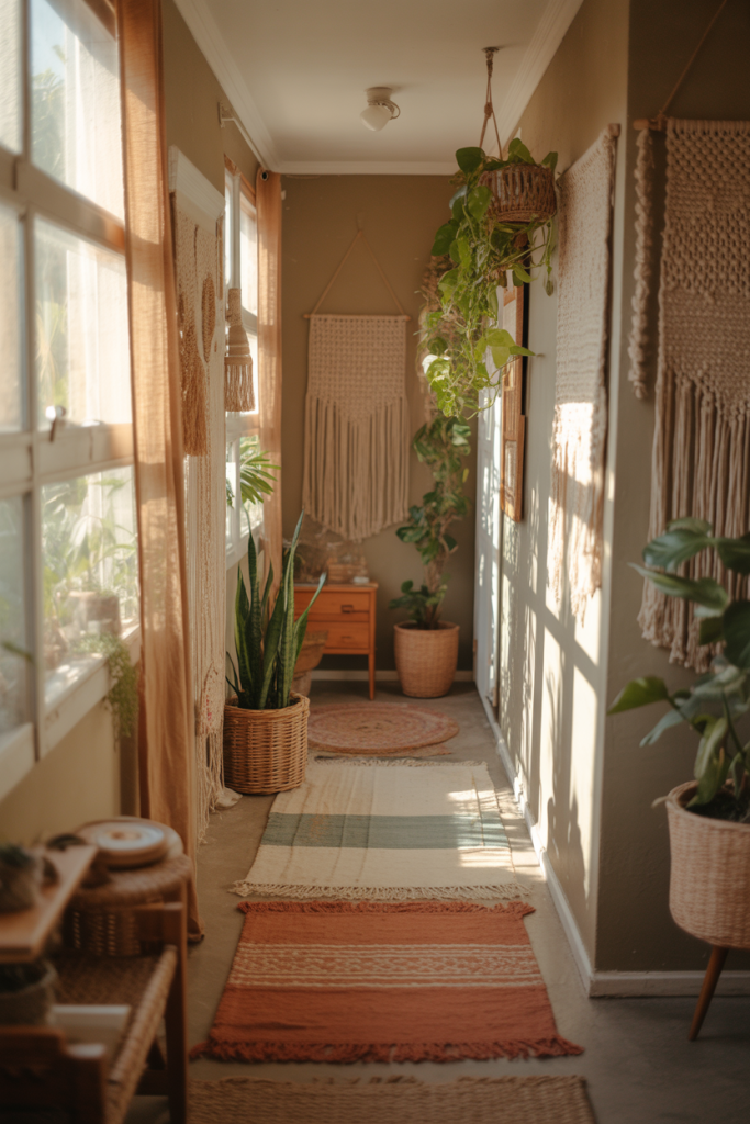 In 2026, boho hallway decorating is focused on flow rather than clutter. Soft curves, plants, and layered textures provide guidance and ease in movement, particularly in long, narrow spaces where straight lines can feel rigid.