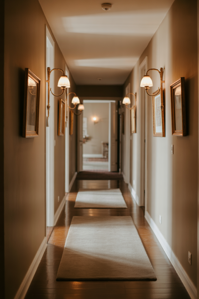 A long, long narrow hallway can feel endless if treated as one flat surface. Breaking it into visual beats using artwork, lighting, or subtle wall treatments creates a sense of movement and balance. This approach works especially well in older homes with extended corridors.