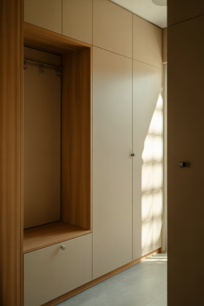 American lifestyle context: Morning rushes are real. A well-organized hallway helps families move faster while staying visually calm.