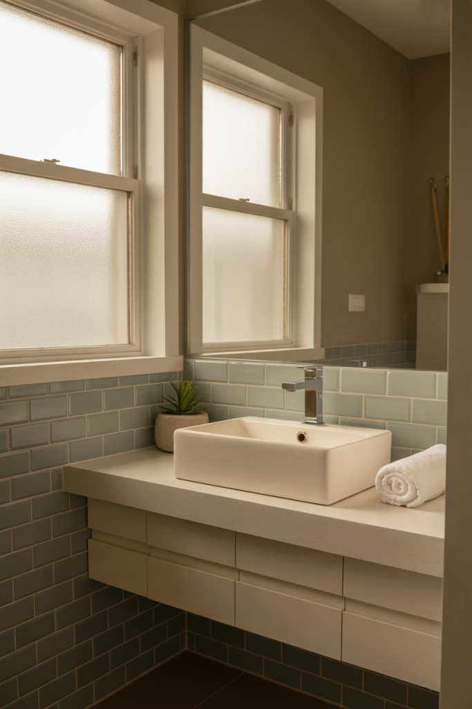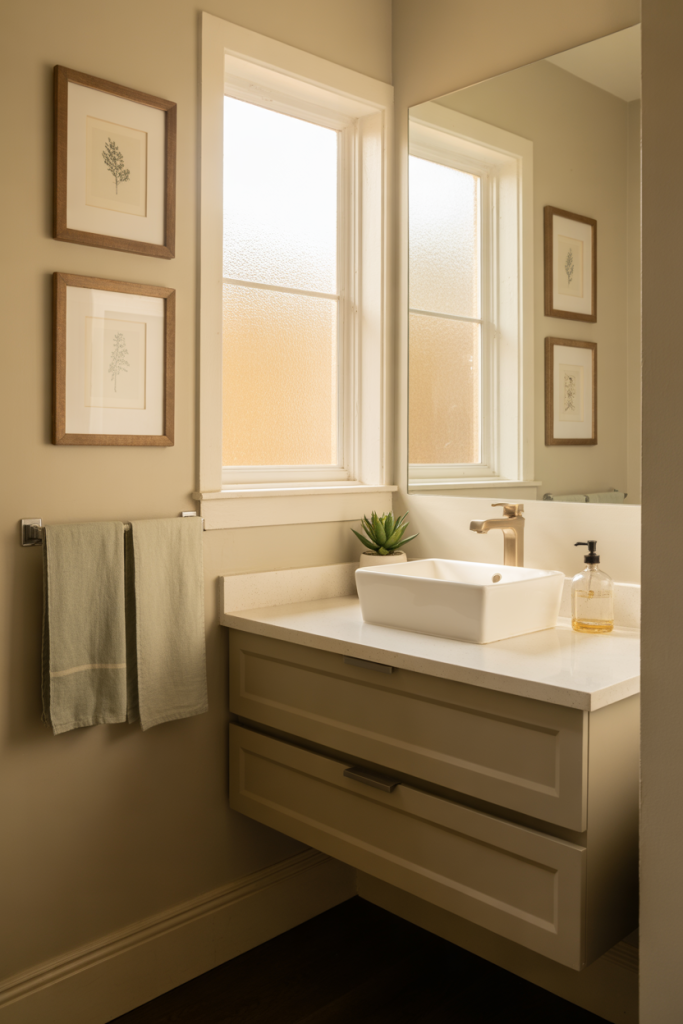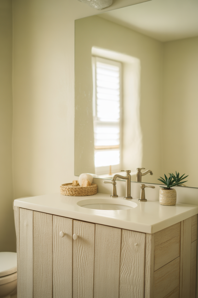 A budget-friendly approach here is paint. Swapping wall color or vanity paint delivers the biggest personality shift without major renovation costs.