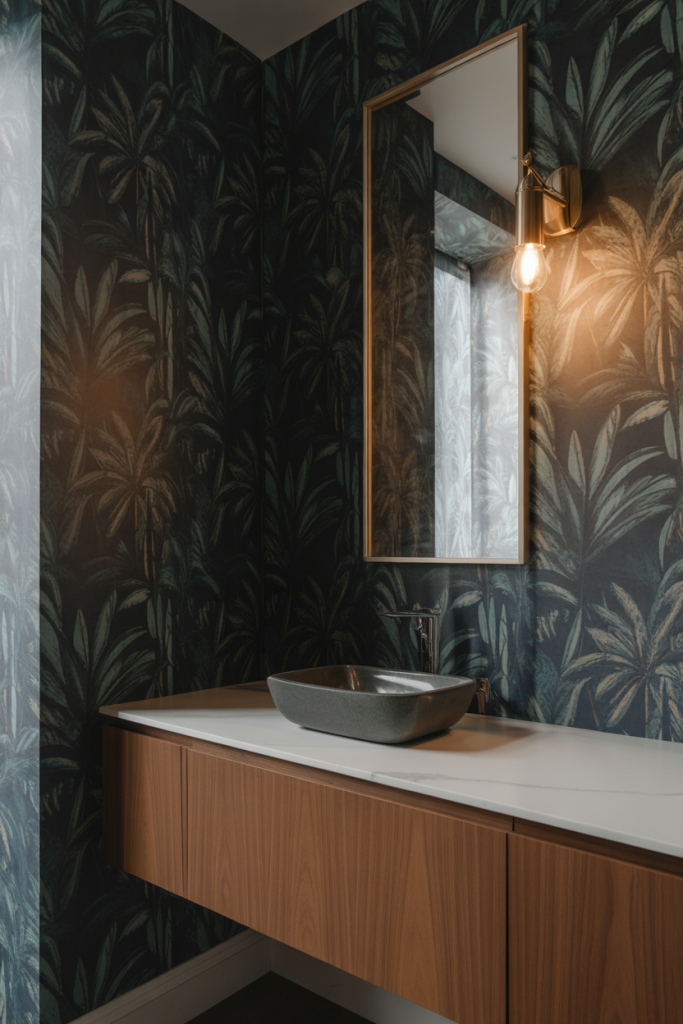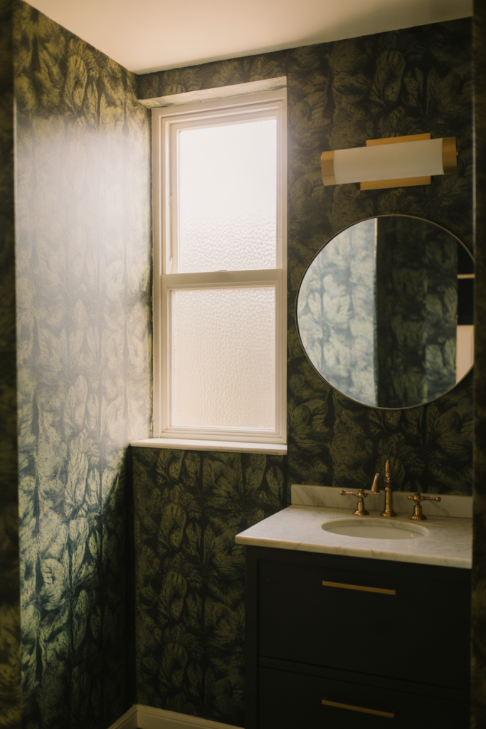 When wallpaper is bold, it is worth keeping fixtures simple. Let the wallpaper do the talking, and the room will feel cohesive and confident.