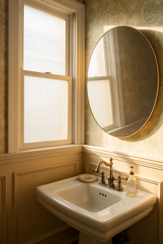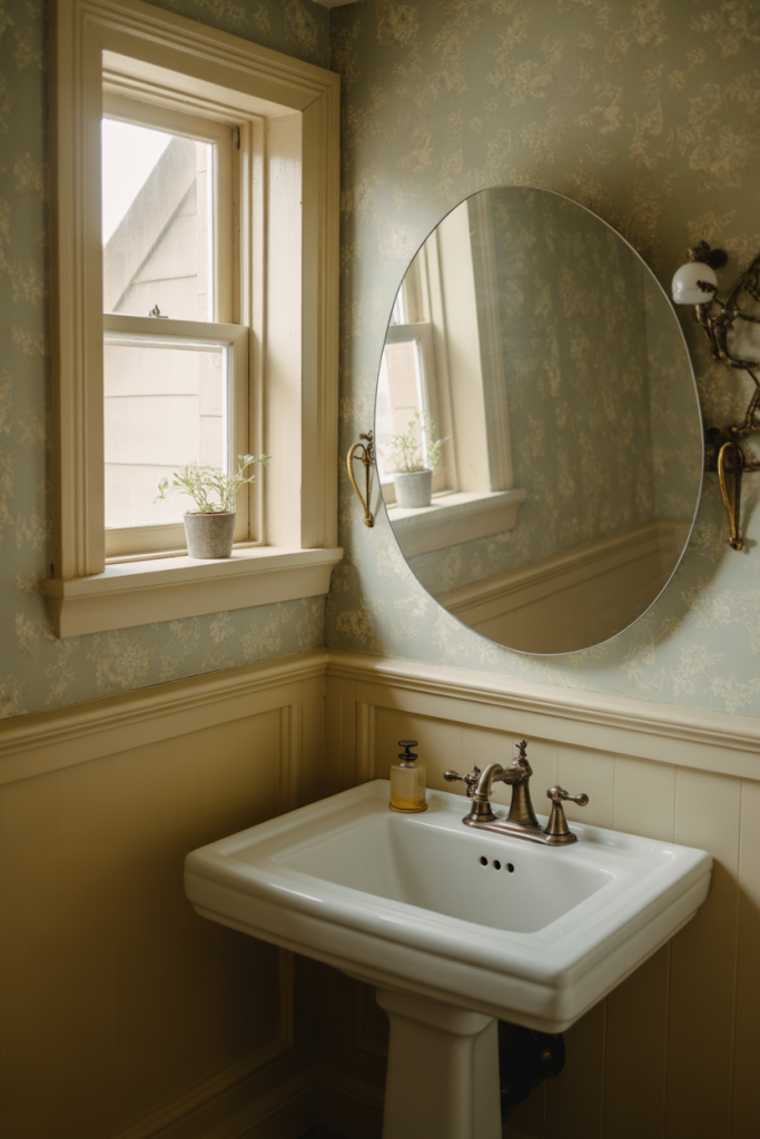 Old-world charm is making a quiet comeback in half bathroom ideas for 2026. A vintage look layered with expressive wallpaper and elegant details turns a functional space into something personal. Think classic patterns, warm metals, and shapes that feel collected rather than purchased all at once.