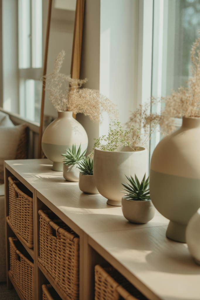From a budget angle, this look relies more on tone than objects. Choosing a cohesive color palette allows inexpensive decor to feel elevated, reducing the need for high-end statement pieces.